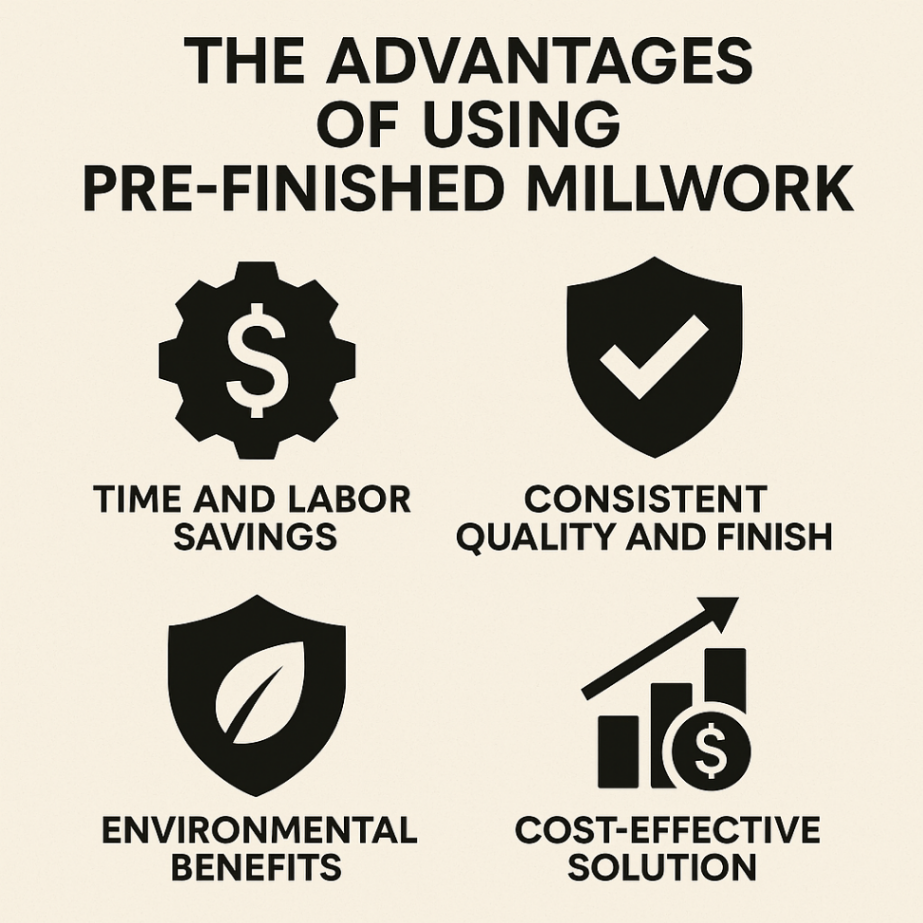 Pre-finished millwork is available in a wide range of colors, textures, and styles, allowing for greater flexibility in design choices. Whether aiming for a modern, traditional, or custom look, pre-finished options can accommodate various aesthetic preferences without compromising on quality or durability.